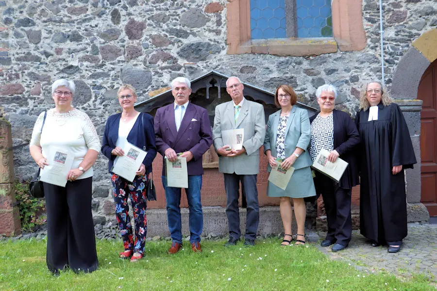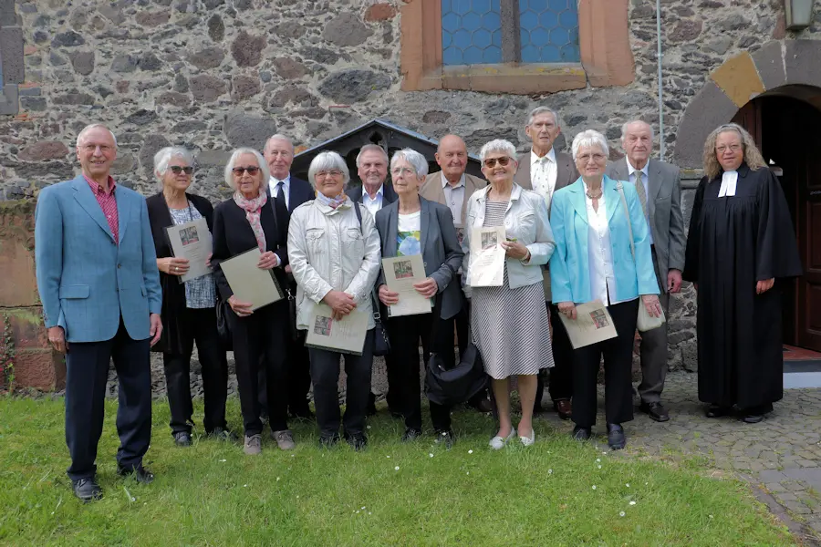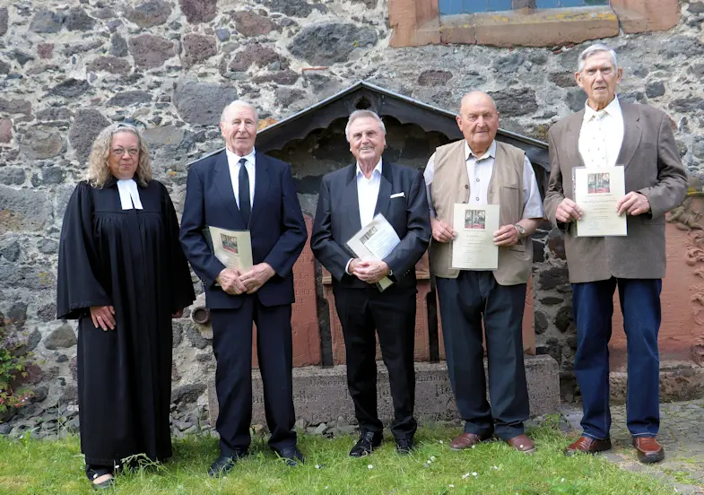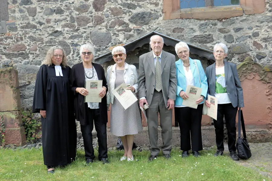 Mitglieder des Kirchenvorstandes (Martina Fay, Gerdi Leidich, Christel Marsteller und Natascha Steinberg) beteiligten sich an der Liturgie, der Segenshandlung für die Jubilare und der Abendmahlsfeier. Sie würdigten damit die Tatsache, dass die Konfirmandinnen und Konfirmanden von einst sich nach Jahrzehnten erneut auf den Weg gemacht hatten, um ihr damaligen Konfirmationsversprechen zu bekräftigen: ihren Lebensweg mit Gott zu gehen. Die Welt hat sich seither enorm verändert. Ein solcher Schritt ist nicht selbstverständlich.