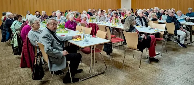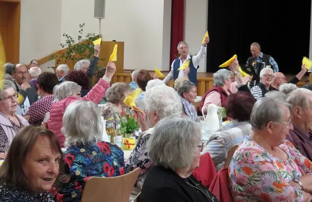 Der Nachmittag begann wie immer mit einer Andacht und endete mit „Ein schöner Tag“. Um die 80 Menschen verlebten in der Limeshalle drei schöne Stunden und sparten nicht mit Applaus und Lob.