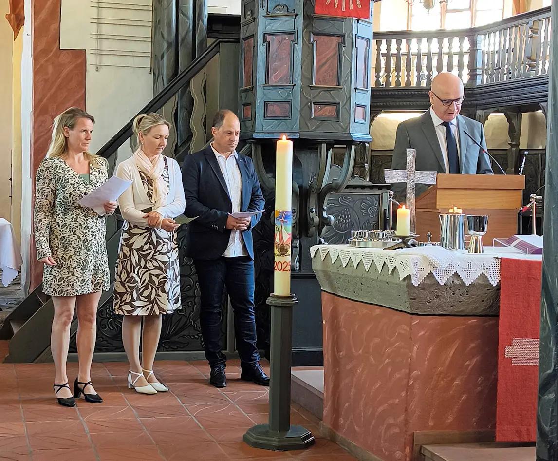 Der Kirchenvorstand sprach gute Wünsche aus. Die feierliche Einsegnung - begleitet von den Glocken unserer Grüninger Kirche - ist ein Moment, den man im Herzen bewahrt.