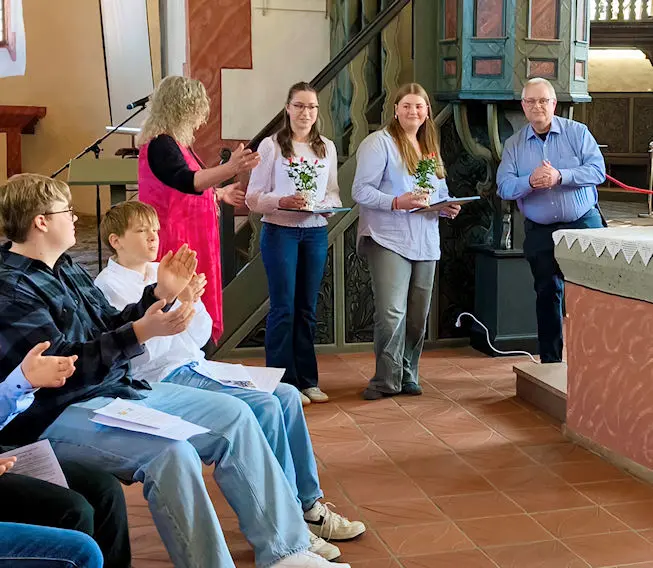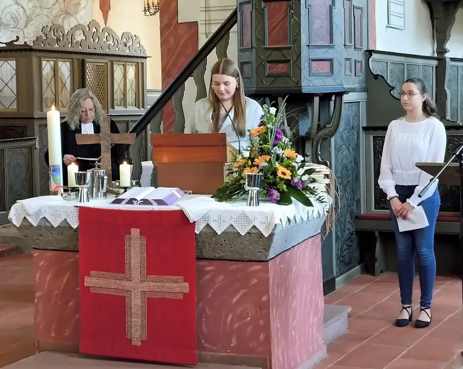 Beeindruckend war der Lied-Beitrag von Björn Fauerbach: „Bridge over troubled water“. Die Gemeinde sang neue Lieder und alte Gesangbuch-Klassiker. An der Liturgie beteiligt waren erneut die Teamerinnen Elisa Abel und Jonna Hirz, die wir für ihr tolles Engagement in der Konfi-Gruppe im Vorstellungsgottesdienst geehrt hatten.