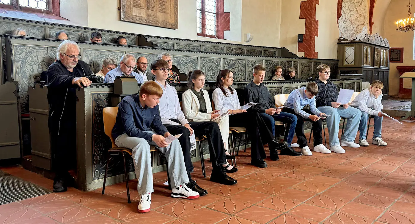 Warum singt die Gemeinde plötzlich „Halleluja“? Wie passen die einzelnen Stücke des Gottesdienstablaufs inhaltlich zueinander? Damit sich die Jugendlichen in unseren Gottesdiensten zurecht finden, steht die Einheit „Liturgie“ ganz am Anfang des Kurses. In der Kirche sind wir mit dem Gesangbuch in der Hand die einzelnen Teile der Gottesdienste durchgegangen - warum passiert wann dies und jenes? Mit Kantor Reiner Mohr haben wir die liturgischen Gesänge eingeübt - eine jahrhunderte alte Tradition - und ein Lied gelernt.