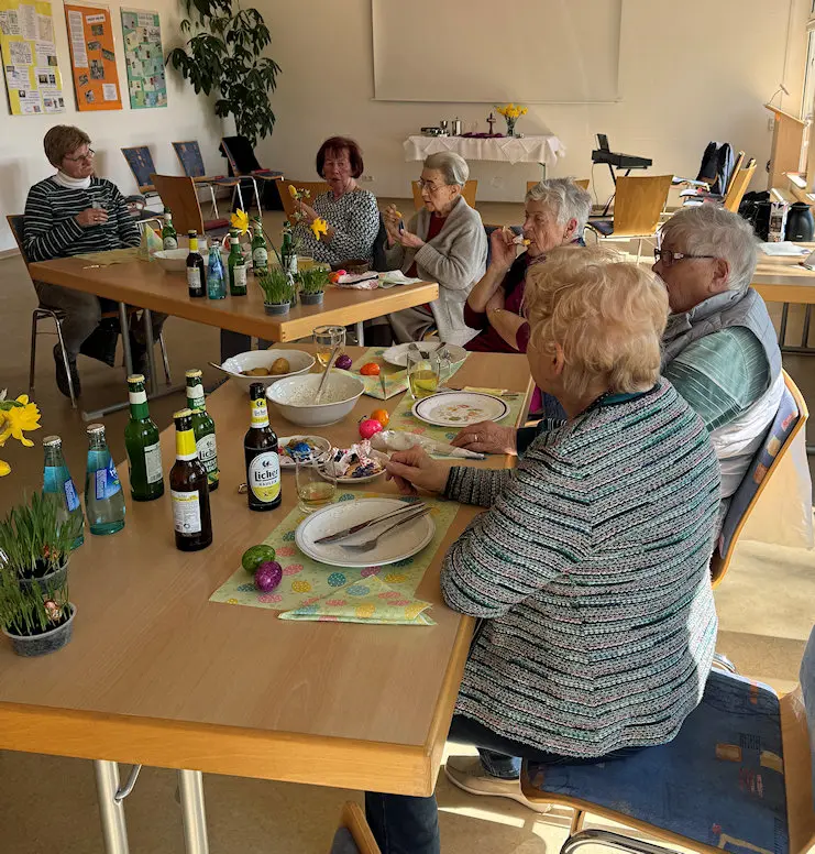 Wer kreativ ist, braucht natürlich auch mal eine schöpferische Pause zum Auftanken. Die hat Erika Bender im April/ Mai genommen, und so zeichneten Heidrun Korte, Ursula Petri und Jutta Martini verantwortlich für zwei Treffen des Frauenkreises. Wobei die ersteren die Vor- und Nachbereitung in der Küche und die Deko übernahmen, während die letztere Fahrdienst hatte und ein kleines Programm vorbereitete. Es klappte prima. Dankeschön Frau Korte und Frau Petri!