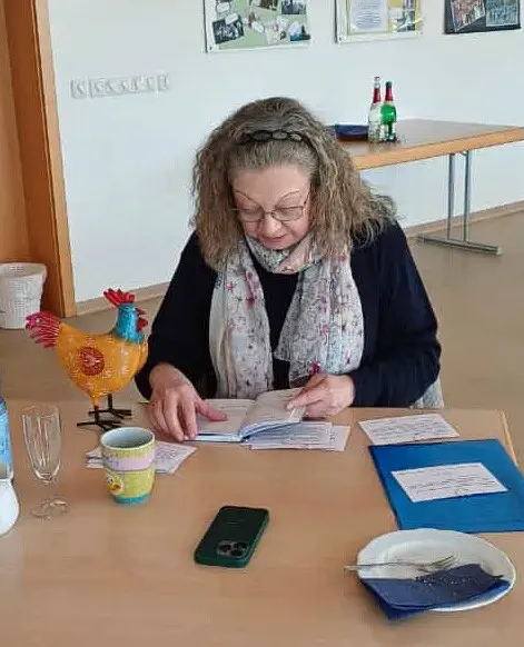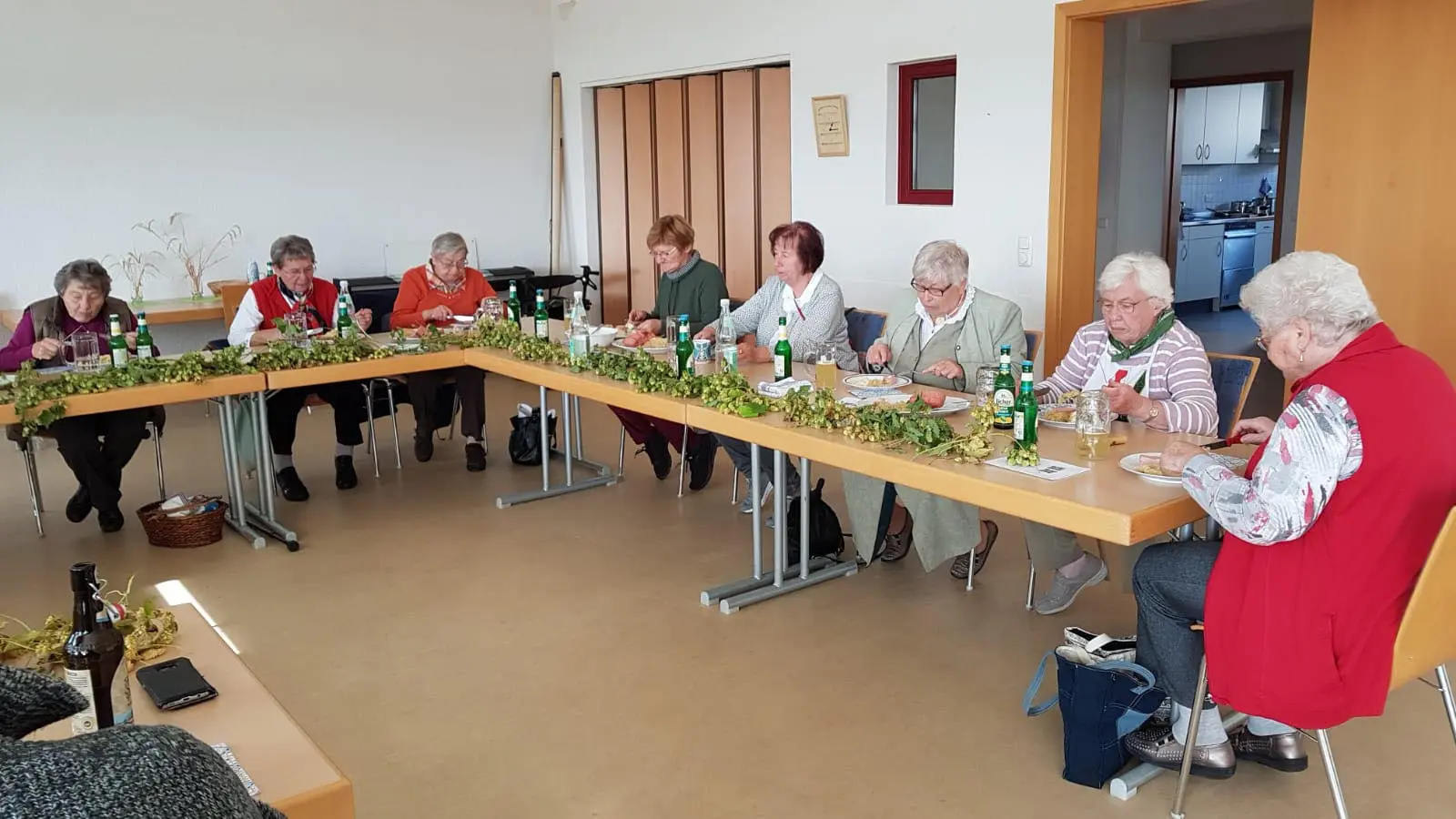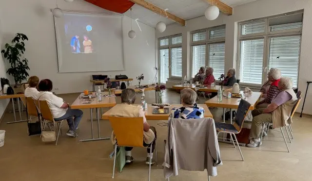 Das neue Jahr haben wir am 11.1. gemeinsam begrüßt und natürlich darauf angestoßen. Dann hat Frau Martini uns an der Leinwand Fotos vom Frauenkreis und seinen Aktivitäten vorgeführt, die sie und Erika Bender in 4 Jahren gesammelt haben. Die ersten Bilder zeigten die Besuche und kurzen Begegnungen an den Haustüren in der Corona-Zeit. Unglaublich, wie viel wir trotzdem seit 2020 unternommen haben! Leider sind einige der Frauen, die wir auf den Bildern sahen, nicht mehr unter uns.