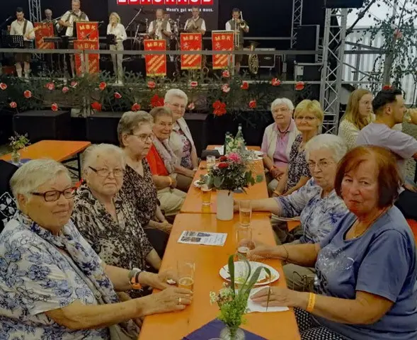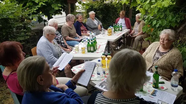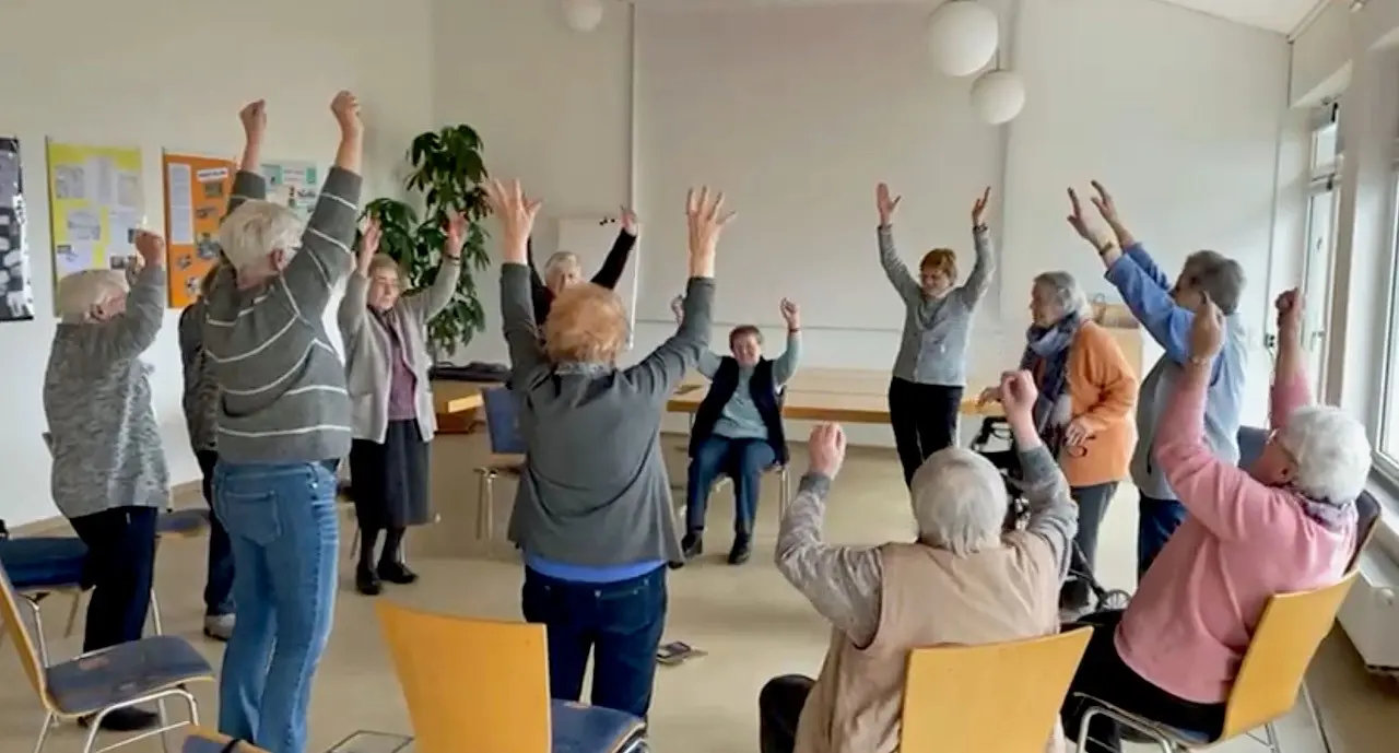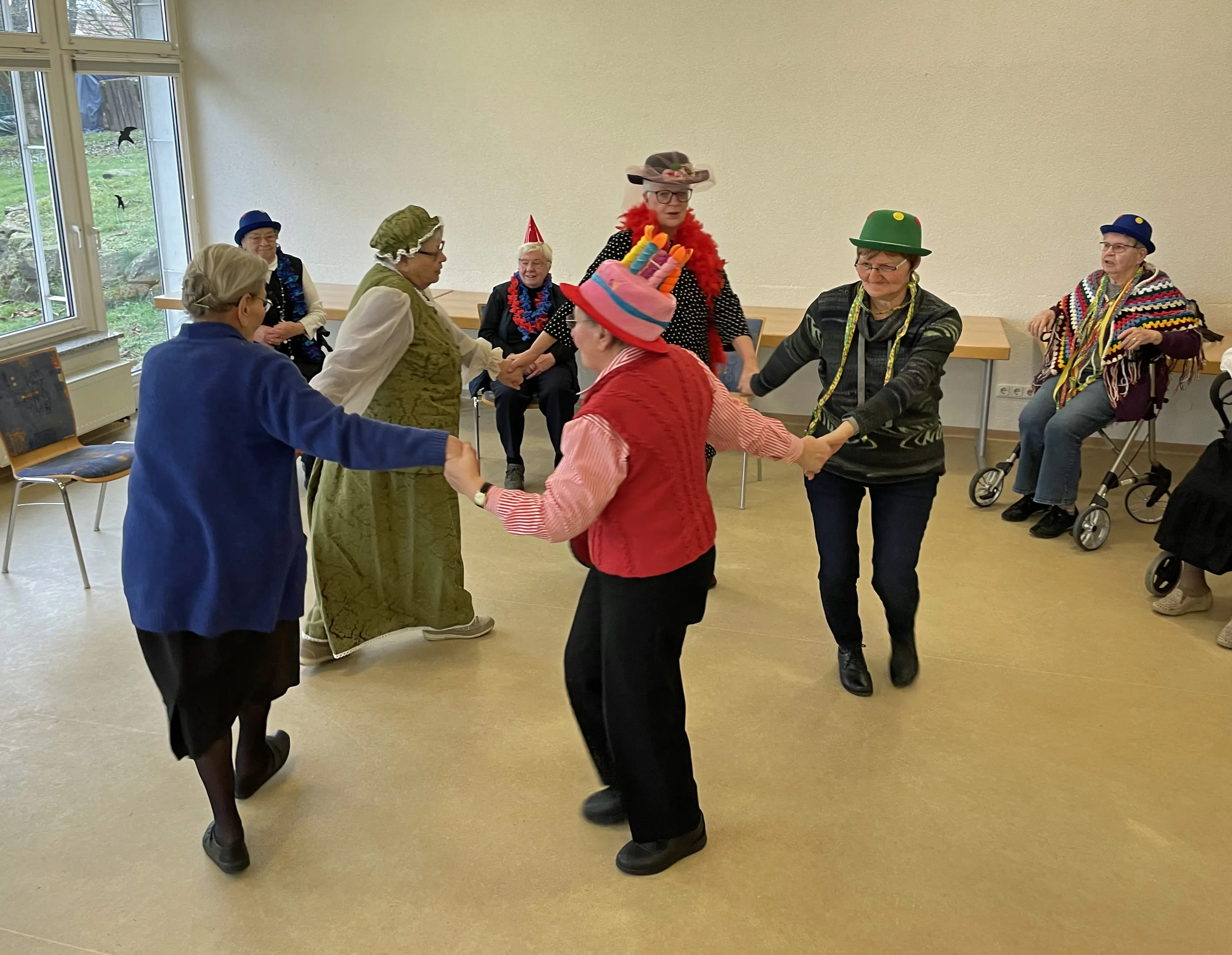 Der Höhepunkt war ganz sicher ein gemeinsamer Tanz zu dem genannten Lied mit viel Bewegung. Alle waren beteiligt. Da wurde mit den Armen gerudert, mit den Beinen gestampft und mit den Hüften geschwungen, die Rollatoren tauschten die Plätze und ein Kreistanz fand statt. Danach gab es Kräppel und Kaffee sowie den einen und anderen stärkenden Trunk.