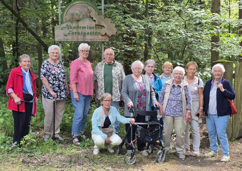 In diesem Sommer war der Frauenkreis Eis und Pizza essen, aber der Höhepunkt war sicher der Besuch des „Akademischen Forstgartens“ im Schiffenberger Wald. Wie lange manche nicht mehr im Wald waren… Mit vier Autos wurden die Frauen zum sog. Kaffeehaus gefahren. Danach mussten erst einmal die Autos zum Parkplatz und die Chauffeure Hildegard, Christel, Werner und Erika kehrten zum Treffpunkt zurück.
