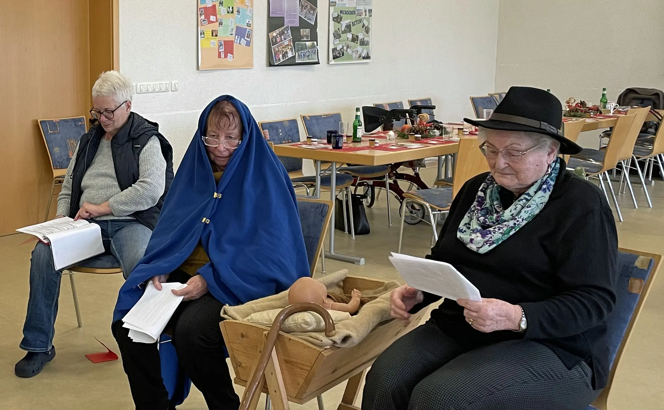 Am 1. Dezember haben die Frauen des Frauenkreises eine adventliche Andacht gefeiert und nachdenkliche Bildergeschichten angesehen. Danach ging es humorvoll zu, denn wir haben mit den Proben zu unserem Krippenspiel in Mundart für unsere Weihnachtsfeier am 15.12. begonnen.