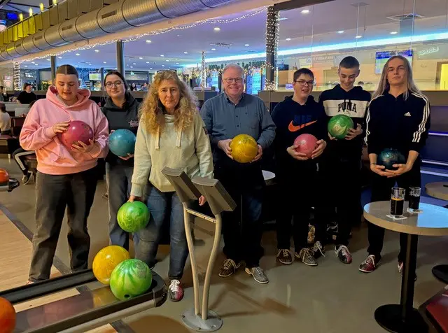 Wir begannen im Januar mit einem Ausflug zur Lindener Bowlinghalle. Die perfekte Gelegenheit, in einer entspannten Atmosphäre gemeinsam in die neue Jugendtreffzeit für 2025 zu starten! Der Besuch der Bowlingbahn fördert den Teamgeist und bringt die Jugendlichen spielerisch zusammen. Gemeinsam Pins umzuwerfen, sorgt nicht nur für eine Menge Spaß, sondern stärkte auch das Wir-Gefühl innerhalb des Teams (Claudia Dörfler, Dekanats-Jugend-Referentin)